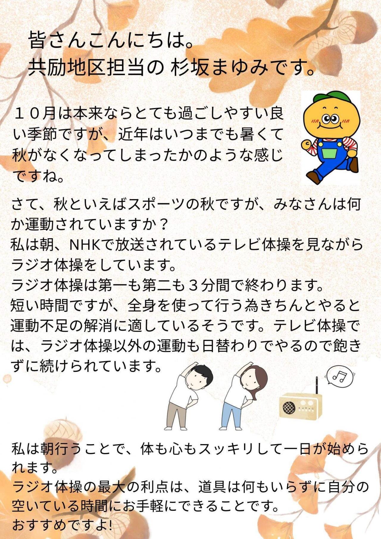 健康推進員の健康活動プチ情報などを発信するコーナーです。「10月号」を掲載しましたので、ぜひ、ご一読ください。